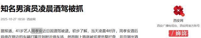10日,据媒体报岁的演员周孝安因酒驾被抓。 事发后经纪公司紧急撤下了所有宣传物料,合作品牌也开始重新评估。