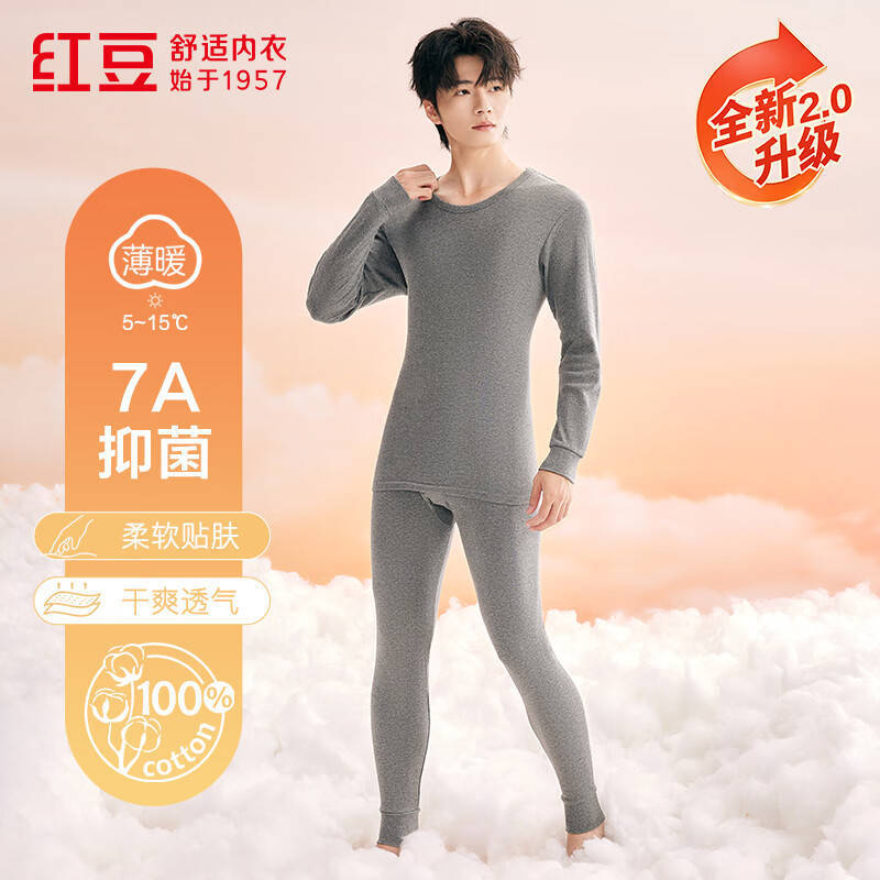 红豆内衣男7A抑菌升级秋衣秋裤纯棉套装圆领薄款打底保暖内衣