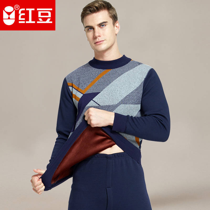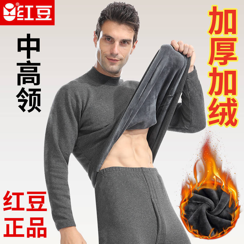 红豆保暖内衣男士加厚加绒中老年人青年高领防寒秋衣秋裤套装冬季